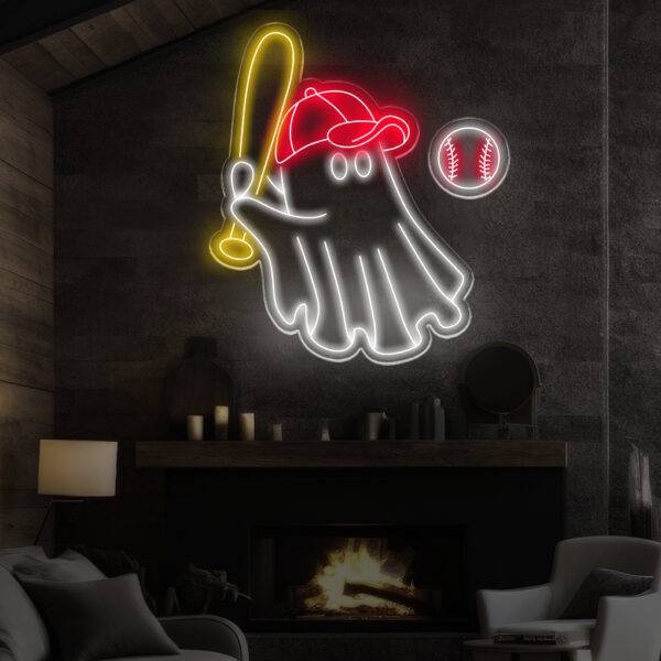 Baseball Ghost Neon Sign – Custom LED Wall Decor, Baseball Fan Gift, Sports Bar Light, Halloween Baseball Art, Unique Baseball Neon Light