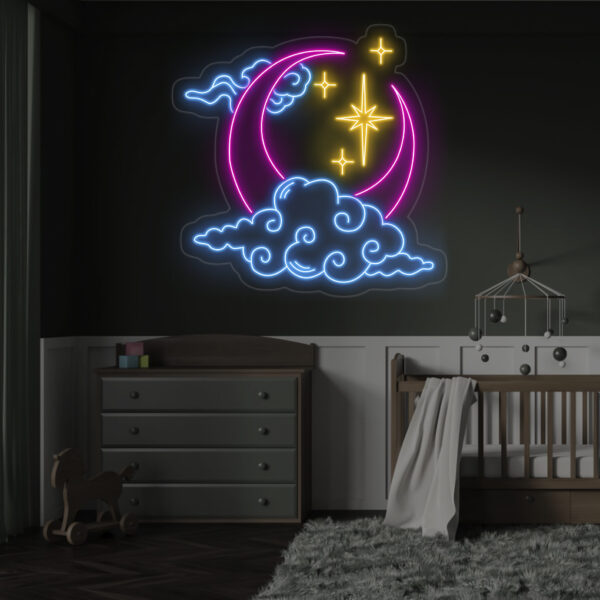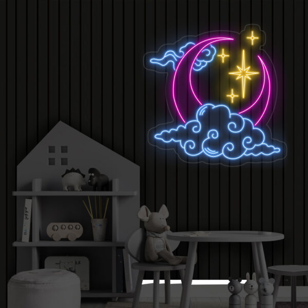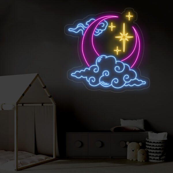 Custom Moon Cloud Star Neon Sign – Handmade LED Art Light, White Vibes Wall Decor, Personalized Neon Light for Home or Bedroom