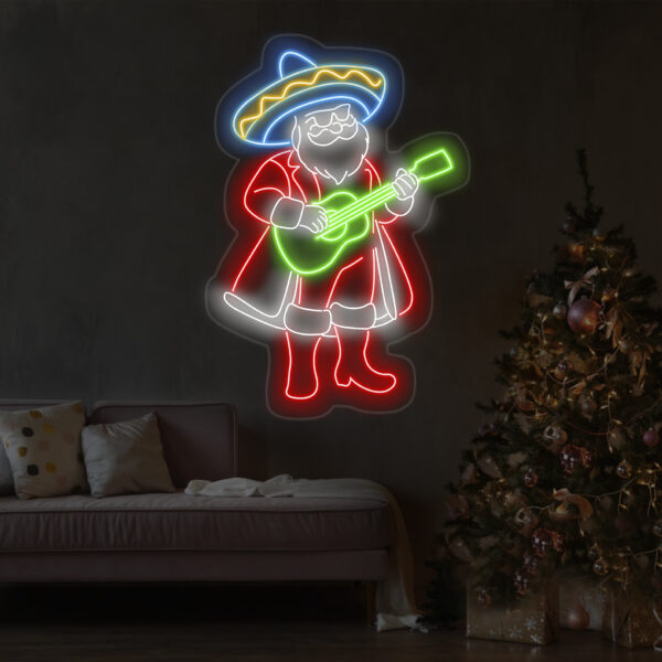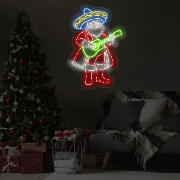 Mexican Santa Neon Sign – Merry Christmas LED Light, Santa Claus with Sombrero Neon Sign, Festive Christmas Wall Art, House Wall Decor