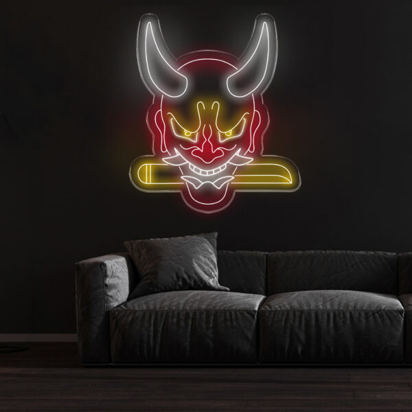 Oni Mask Neon Sign – Japanese Hannya Demon Mask, Samurai Wall Art, Custom Japanese Neon Decor, Hannya Mask LED Light, Anime Neon Sign