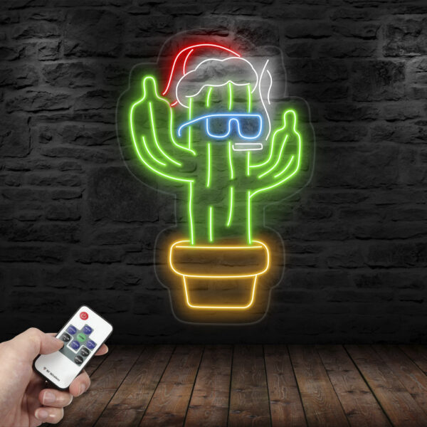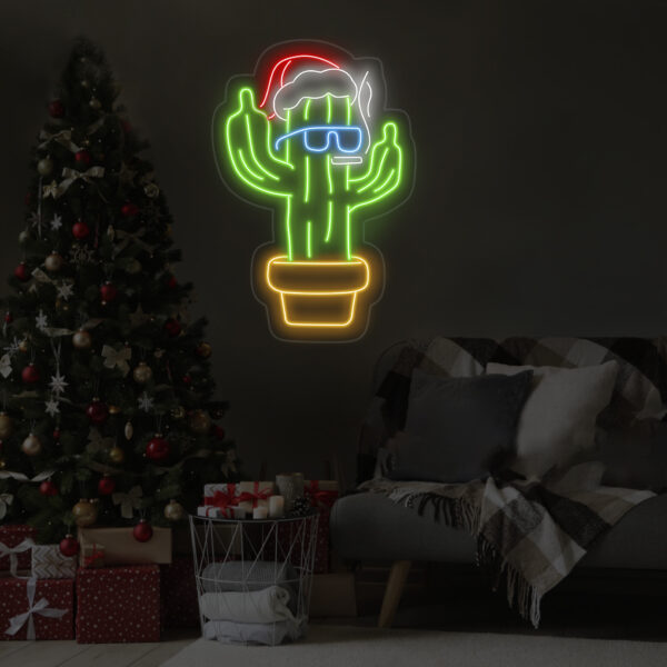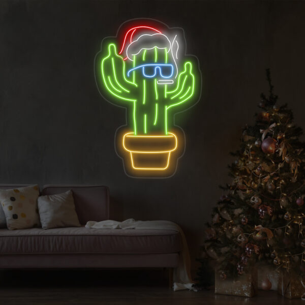 Smoking Cactus Christmas Neon Sign – Funny Santa Hat LED Light, Custom Holiday Wall Decor, Cool Cactus Smoking Neon Art for Home or Bar